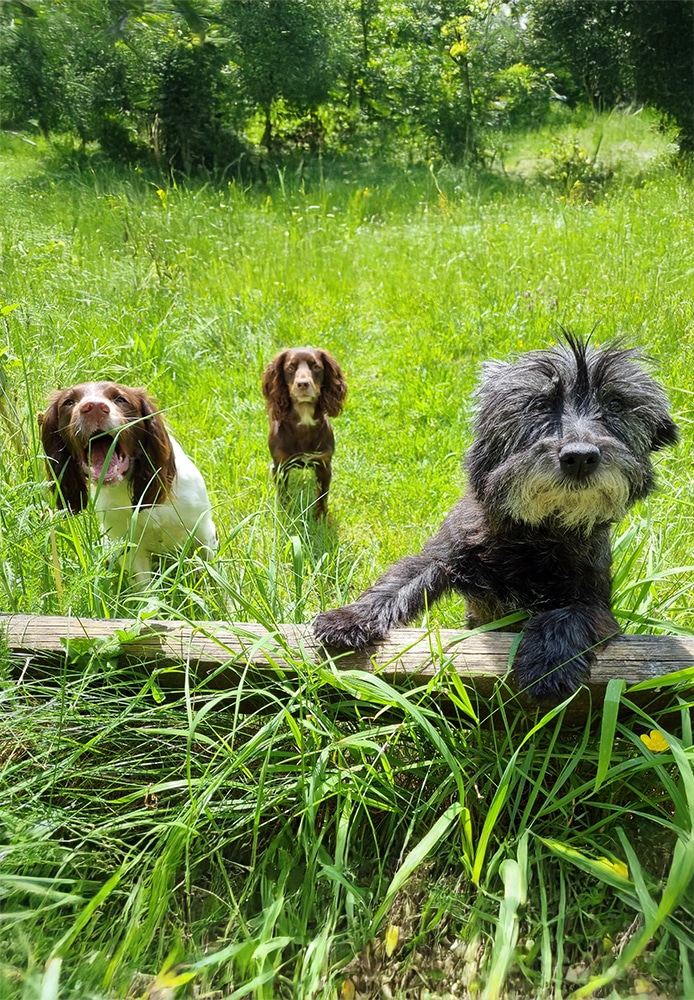 James’ three dogs, Fern, Lily and Tinks
