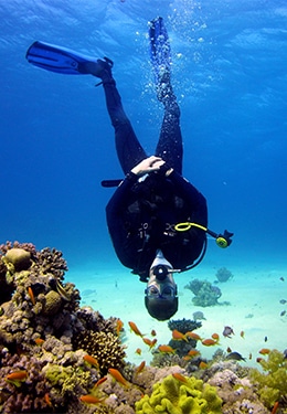 James scuba diving (upside down)