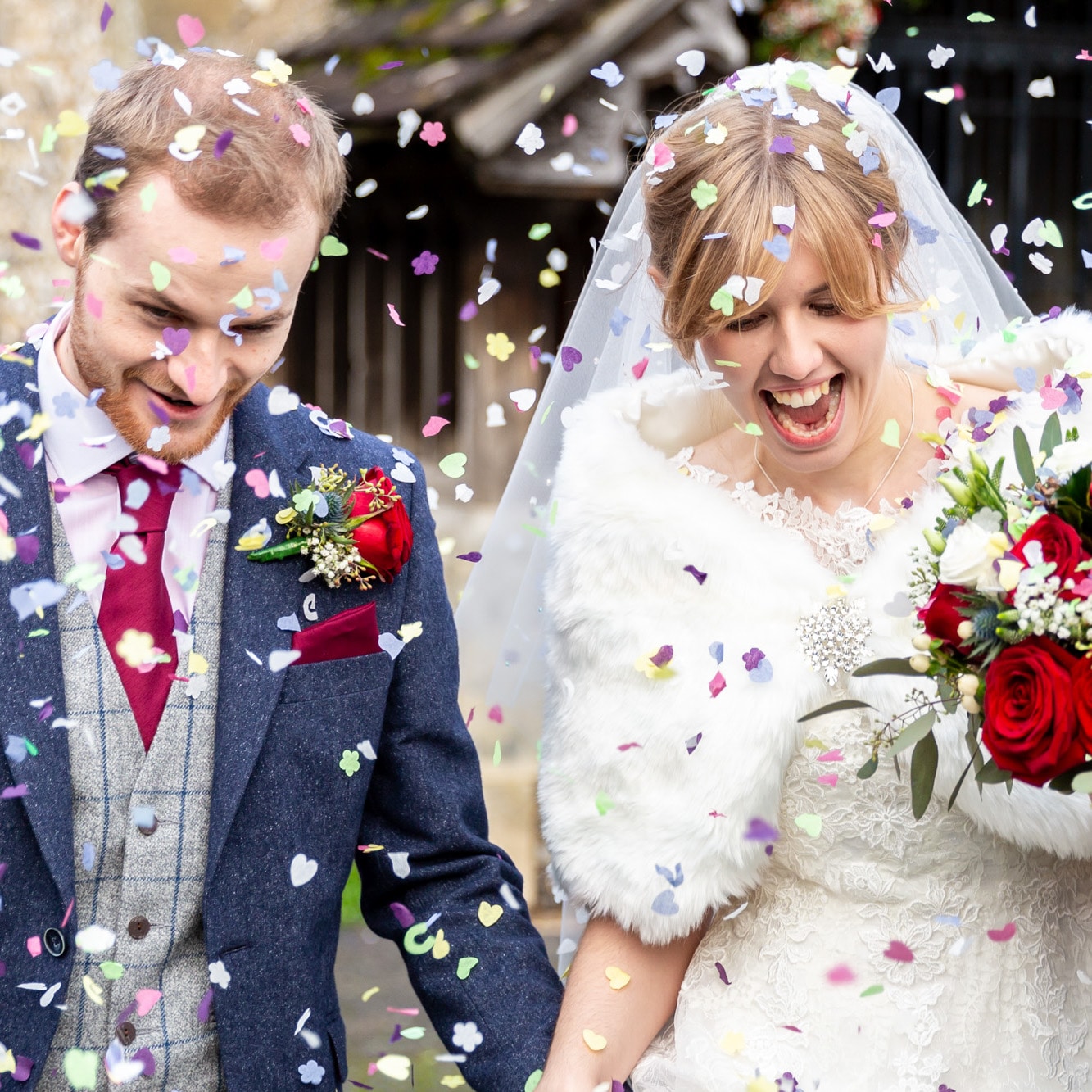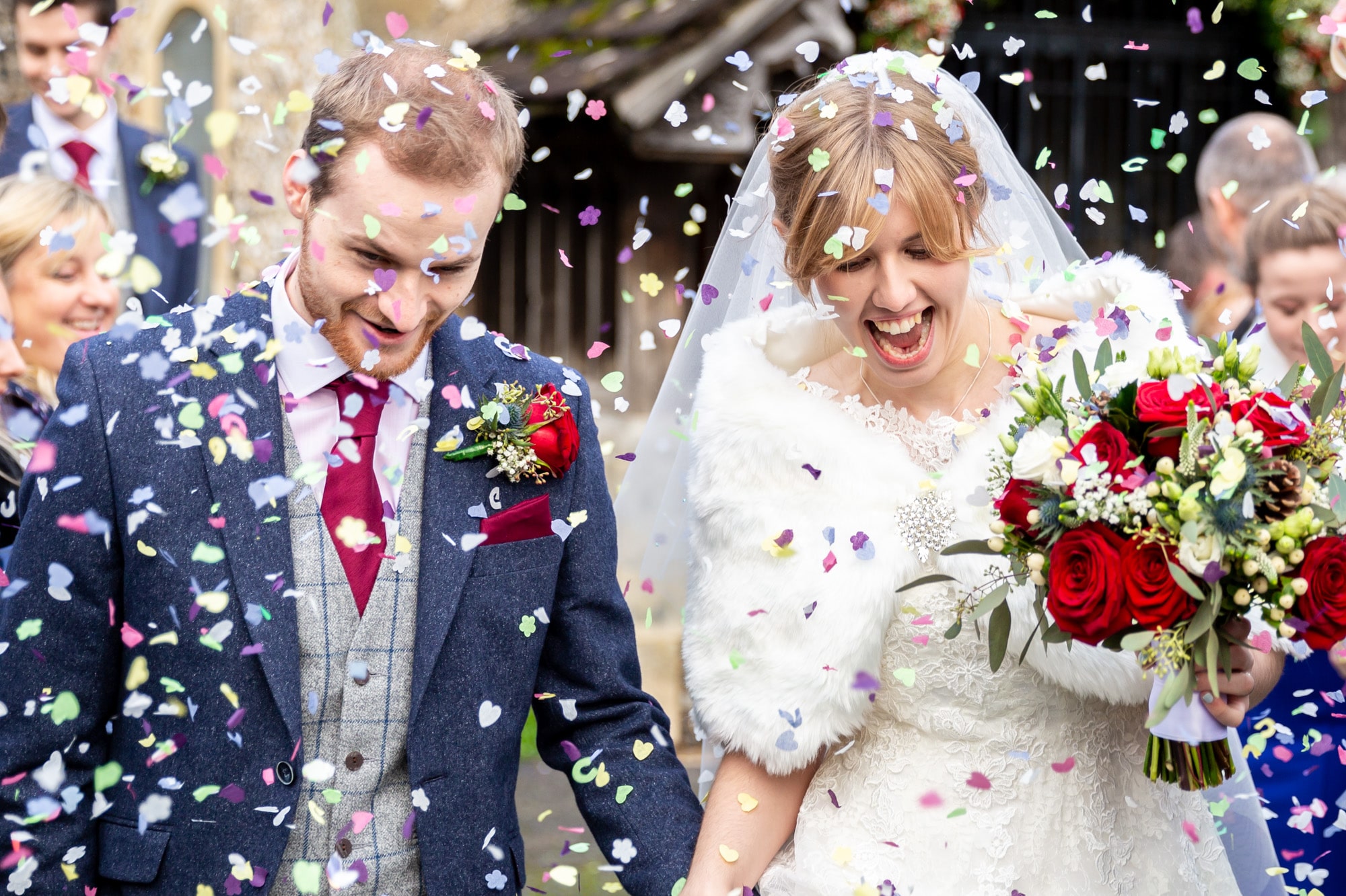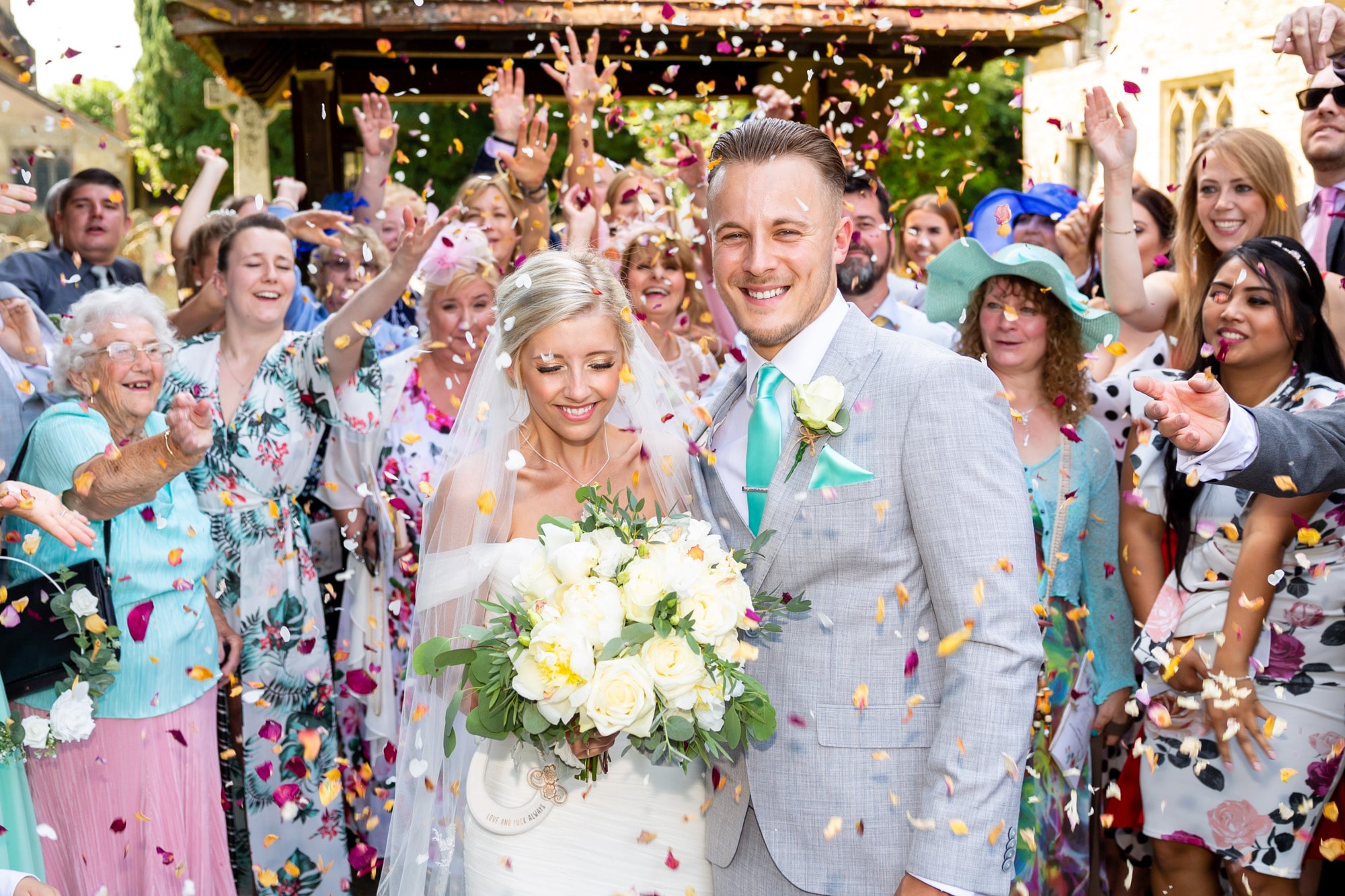 Bride & Groom being showered with confetti